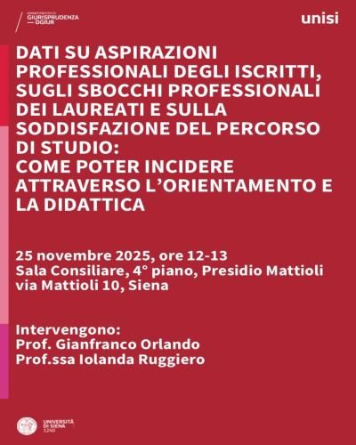 Incontro “Dati su aspirazioni professionali degli iscritti, sugli sbocchi professionali dei laureati e sulla soddisfazione del percorso di studio. Come poter incidere attraverso l’orientamento e la didattica”
