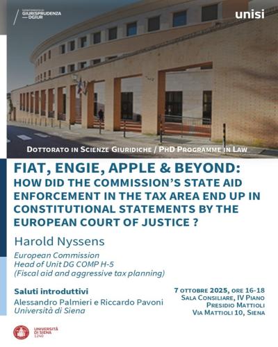 Seminario “Fiat, Engie, Apple & Beyond: How did the Commission’s state aid enforcement in the tax area end up in constitutional statements by the European court of justice?”